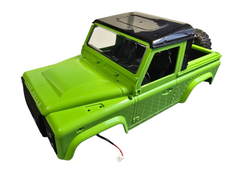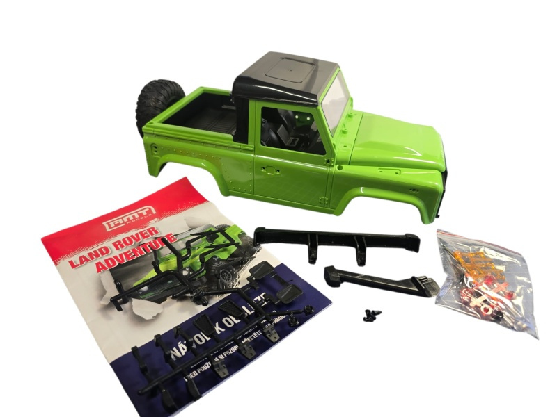 Zelená karoserie pro RC auto RMT LAND ROVER 1/12Model obsahuje doplňky karoserie, krátkou střechu, samolepky. Součástí karoserie je kabel napájení a led osvětlení předních světel bez blinkrů.Pokud doma máte RC model RMT Land Rover, můžete si ho pomocí 4 šroubků přestrojit na jinou barevnou variantu. K tomu vám poslouží tato karoserie.Délka modelu je 33 cm, šířka 15cm, rozvor náprav 19,5 cm, rozchod 13 cm. Věnujte prosím plnou pozornost tomu jakou verzi Land roveru vlastníte.Díl je vhodný pro: RC modelpoznávací znakydalší poznávací znakyRMT Land Rover Adventure- bez samolepky RMT Land Rover Trail- bez samolepky RMT Land Rover T98- bez samolepky RMT Land Rover Adventure V2.0- kulatá samolepka RMT- u zadní nápravy ve spodní části modeluRMT Land rover Trail V2.0- kulatá samolepka RMT- v bateriovém prostoru pod akumulátoremRMT Land Rover T98 V2.0- kulatá samolepka RMT- v bateriovém prostoru pod akumulátorem