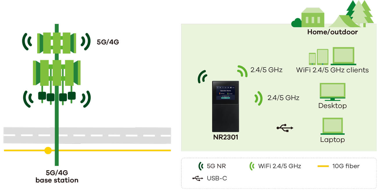 Zyxel Networks NR2301 je špičkový přenosný směrovač 5G NR, který splňuje standard 3GPP Release 16 a zajišťuje bezproblémovou kompatibilitu se sítěmi 4G.